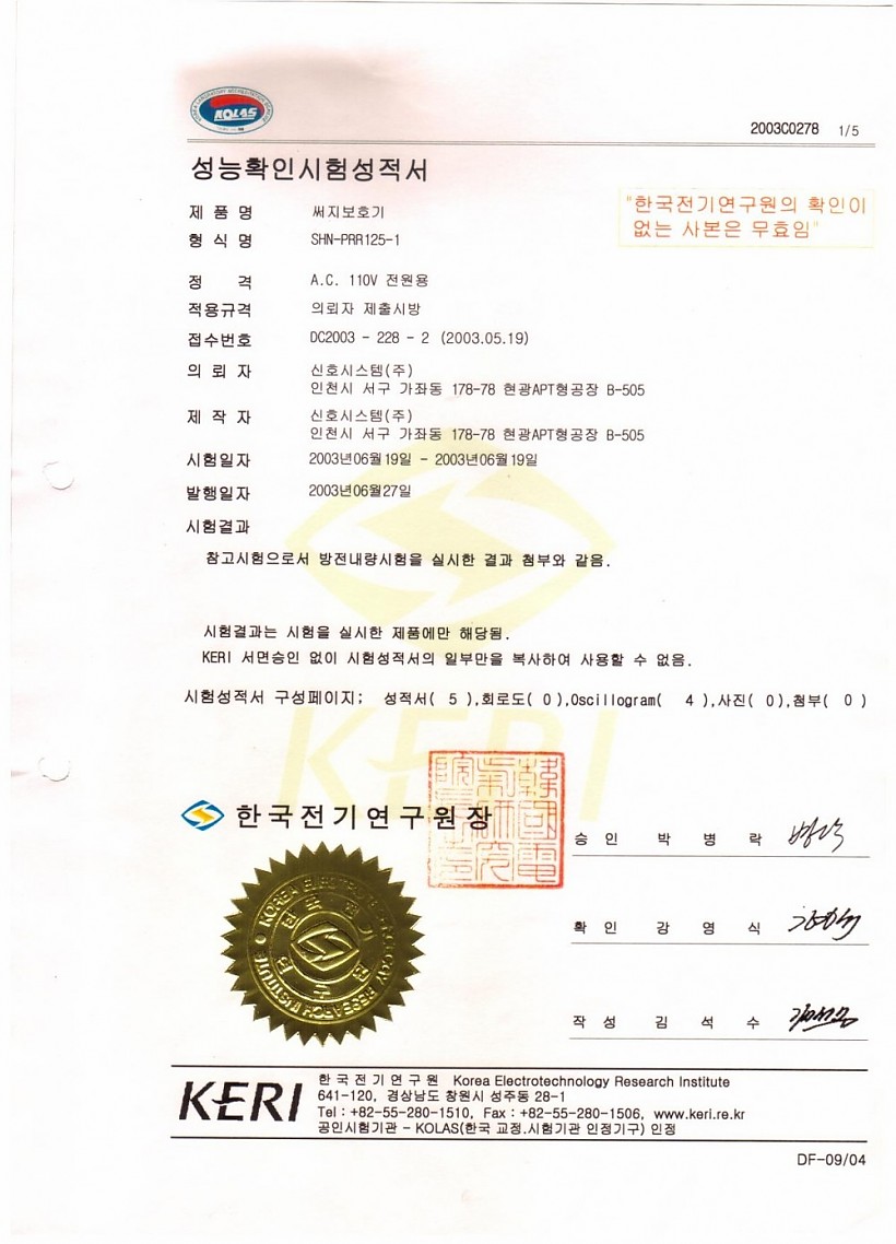 시험성적서(전원용피뢰기:SHN-PRR125) 페이지 정보 작성자 관리자 작성일15-02-24 10:41 조회5,171회 댓글0건 이전글 다음글 목록 답변 본문 시험 댓글목록 등록된 댓글이 없습니다. 이전글 다음글 목록 답변